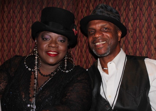 Singer Thornetta Davis with sound engineer Scott Sowers